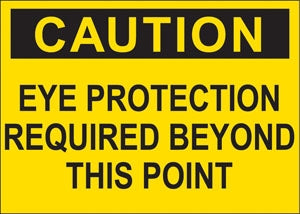 View full detailsDecal says, "CAUTION EYE PROTECTION REQUIRED BEYOND THIS POINT" Single Sided Peel and Stick Decal Color: Black on Yellow Material: Vinyl Size: 10"...