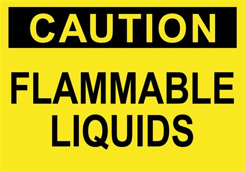 Decal says, "CAUTION FLAMMABLE LIQUIDS" Single Sided Peel and Stick Decal Color: Black on Yellow Material: Vinyl Size: 10"w x 7"h