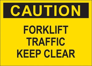 Decal says, "CAUTION FORKLIFT TRAFFIC KEEP CLEAR" Single Sided Peel and Stick Decal Color: Black on Yellow Material: Vinyl Size: 10"w x 7"h