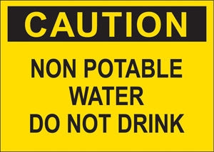 Decal says, "CAUTION NON POTABLE WATER DO NOT DRINK" Single Sided Peel and Stick Decal Color: Black on Yellow Material: Vinyl Size: 10"w x 7"h