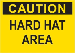 Decal says, "CAUTION HARD HAT AREA" Single Sided Peel and Stick Decal Color: Black on Yellow Material: Vinyl" "Color: Black on Yellow Material: Vi...