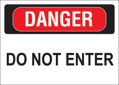 Decal says, "DANGER DO NOT ENTER" Single Sided Peel and Stick Decal Color: Red and Black on White Material: Vinyl Size: 10"w x 7"h