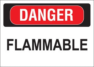 Decal Says: "Danger Flammable" Single Sided Peel and Stick Decal Color: Red and Black on White Material: Vinyl Size: 10"w x 7"h