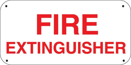 Sign says, "FIRE EXTINGUISHER" Message printed on one side Pre-punched corner holes for easy mounting Color: Red on White Material: .040 Aluminum ...