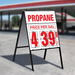 Easily adjust your Propane pricing with this double sided A-frame flip sign. Constructed from powder-coated steel and aluminum, this weather resistant flip number sign is 24"W x 44"H, with 10" flip numbers.
