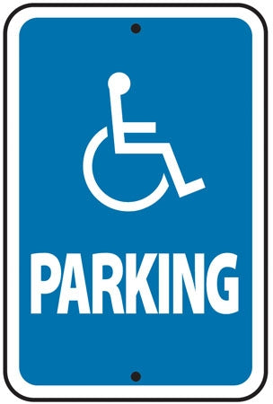 View full detailsSign says, "(handicap logo) PARKING" Message printed on one side Mounting Holes at the top and bottom for pole or wall mounting Color: Blue on Whi...