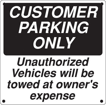 View full detailsSign says, "CUSTOMER PARKING ONLY Unauthorized Vehicles will be towed at owner's expense" Message printed on one side Mounting Holes at the top an...