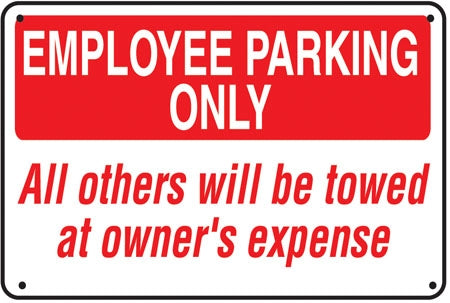 View full detailsSign says, "EMPLOYEE PARKING ONLY All others will be towed at owner's expense" Message printed on one side Pre-punched top and bottom holes for po...