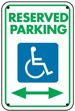 View full detailsSign says, "RESERVED PARKING (handicap) STATE DISABLED PARKING PERMIT REQUIRED" 3M reflective coating Message printed on one side Pre-punched top...
