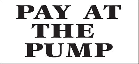 Decal says, "CASH CUSTOMERS Please Pay First CREDIT/DEBIT CUSTOMERS Pay at the Pump".