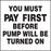 Single Sided Peel and Stick Decal says, "YOU MUST PAY FIRST BEFORE PUMP WILL BE TURNED ON"