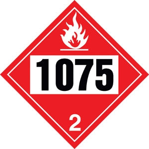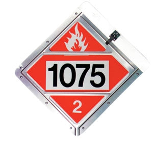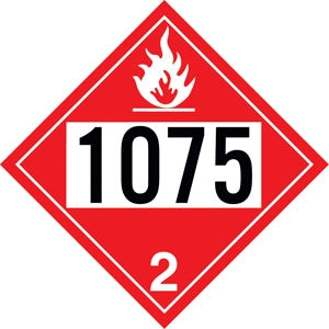 Black and White On Red. Styrene Placard states "1075". White border 1/2" from edge to meet CFR 49 standards. Works Great with our Aluminum Slide-I...