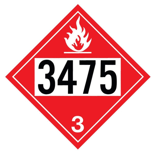 Black and White On Red Styrene. Placard states "3475". Identifies Ethanol. Required when transporting ethanol by rail, water or road. Works Great ...