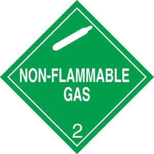 Green and White Vinyl decal says, "NON-FLAMMABLE GAS 2". Placards meet CFR 49 and are capable of withstanding, without deterioration 30 day exposu...