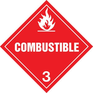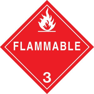 Red and White Vinyl decal says, "FLAMMABLE 3". Placards meet CFR 49 and are capable of withstanding, without deterioration 30 day exposure to open ...