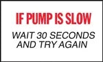 View full detailsDecal says: "IF PUMP IS SLOW WAIT 30 SECONDS AND TRY AGAIN" Single Sided Peel and Stick Decal Color: Red and Black on White Material: Vinyl Size: ...
