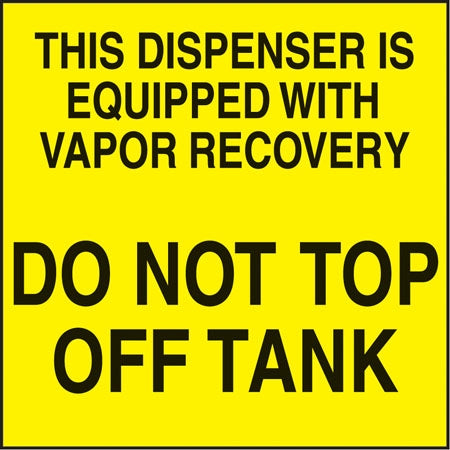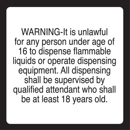 View full detailsDecal says, "NO SMOKING STOP ENGINE You must remain in attendance outside your vehicle while fueling NO DISPENSING FUEL INTO UNAPPROVED CONTAINERS"...
