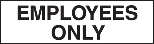 Decal says: "EMPLOYEES ONLY" Single Sided Peel and Stick Decal Color: Black on White Material: Vinyl Size: 7"w x 2"h