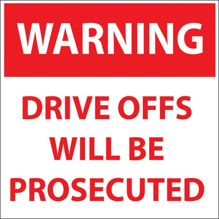 Drive Offs Will Be Prosecuted- 13"w x 6"h Decal