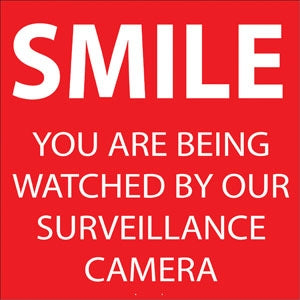 Decal says: "SMILE You are being watched by our video surveillance camera!" Single Sided Peel and Stick Decal Color: Red on White Material: Vinyl ...