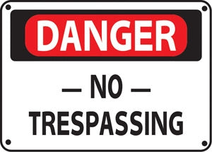 Aluminum Sign says: "DANGER -NO- TRESPASSING" Message printed on one side Pre-punched corner holes for easy mounting Color: Red and Black on White...