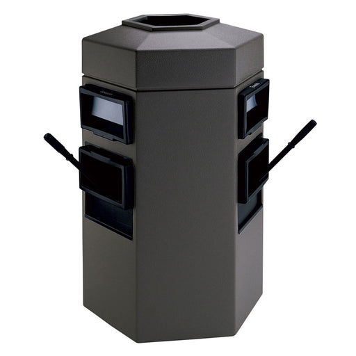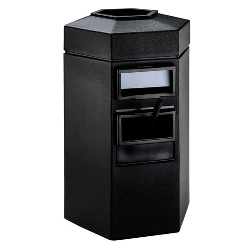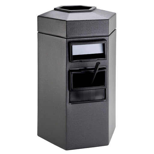 This waste container includes patented Grab Bag™ system that secures trash bag in place and is also molded from long-lasting polyethylene that won’t rust, dent or chip. It’s unique hexagon shape is great for pump-island areas with limited space.
