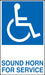 Single Sided, Peel and Stick Decal says: "(Handicap) SOUND HORN FOR SERVICE"