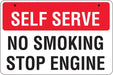 - Sign states "SELF SERVE NO SMOKING STOP ENGINE"