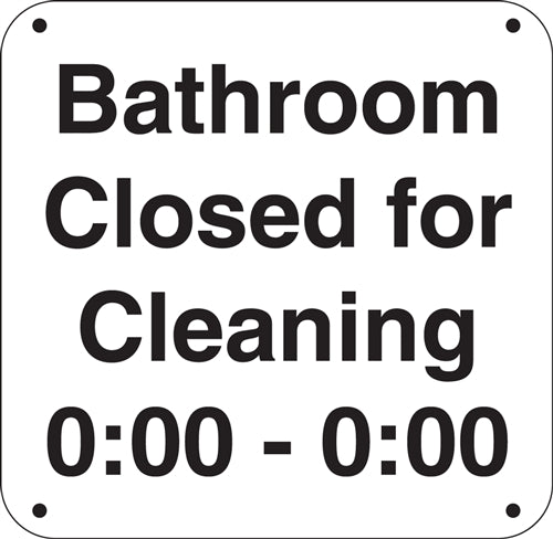 Customize this sign! Keep the bathroom clean with regularly scheduled cleaning times. This durable aluminum sign will tell guests when to schedule their bathroom visits around!