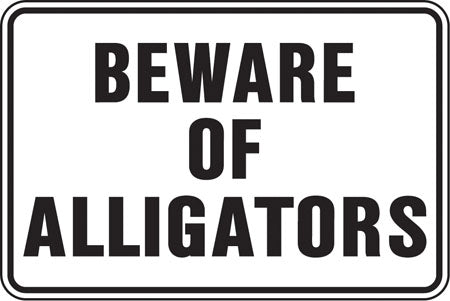 • Sign states "Beware Of Alligators"
