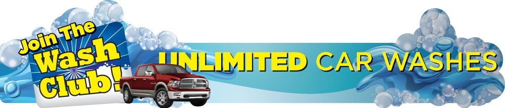Die-Cut Gate Arm Sign says: "Join The Wash Club! UNLIMITED CAR WASHES".