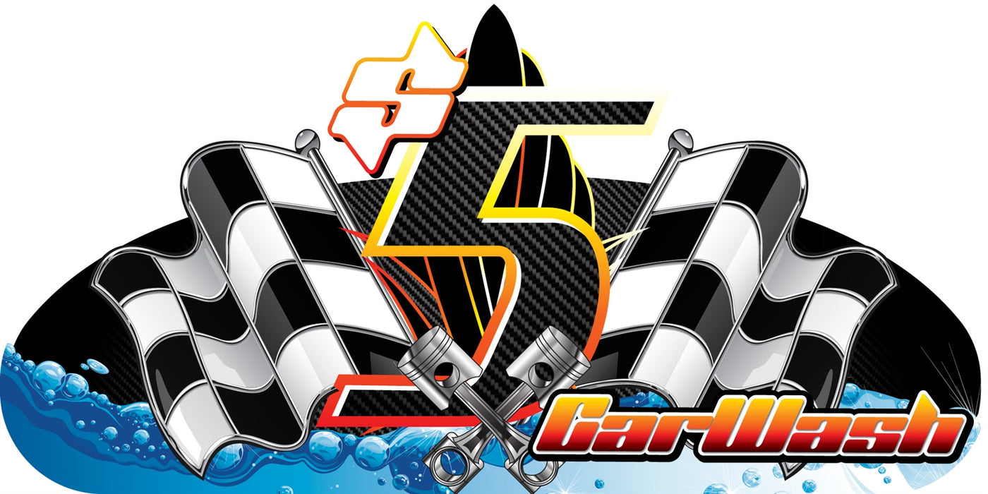 - Die-Cut Wall Sign says: "$5 Carwash".