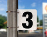 Double sided, Aluminum Side-Mount Pump Number Sign says "Number 3". Black on White. Includes two 47" stainless steel band clamps for mounting.