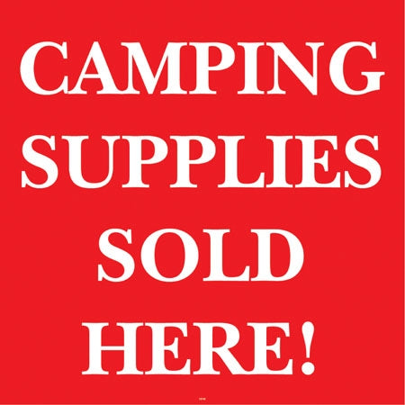 - Sign says "CAMPING SUPPLIES SOLD HERE"