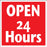 - Sign says "OPEN 24 Hours"