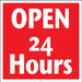 Red on white sign states "OPEN 24 Hours" Printed on one side. For use with either Squarecade 36 or Squarecade 45 frame.