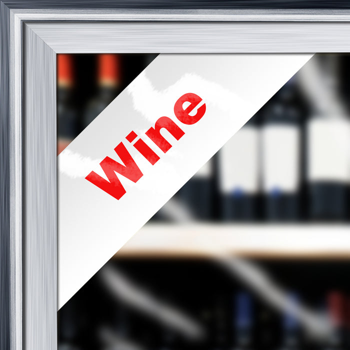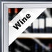 Attract attention without blocking the view! Designed to fit in corner, this cooler door decal says "Wine"